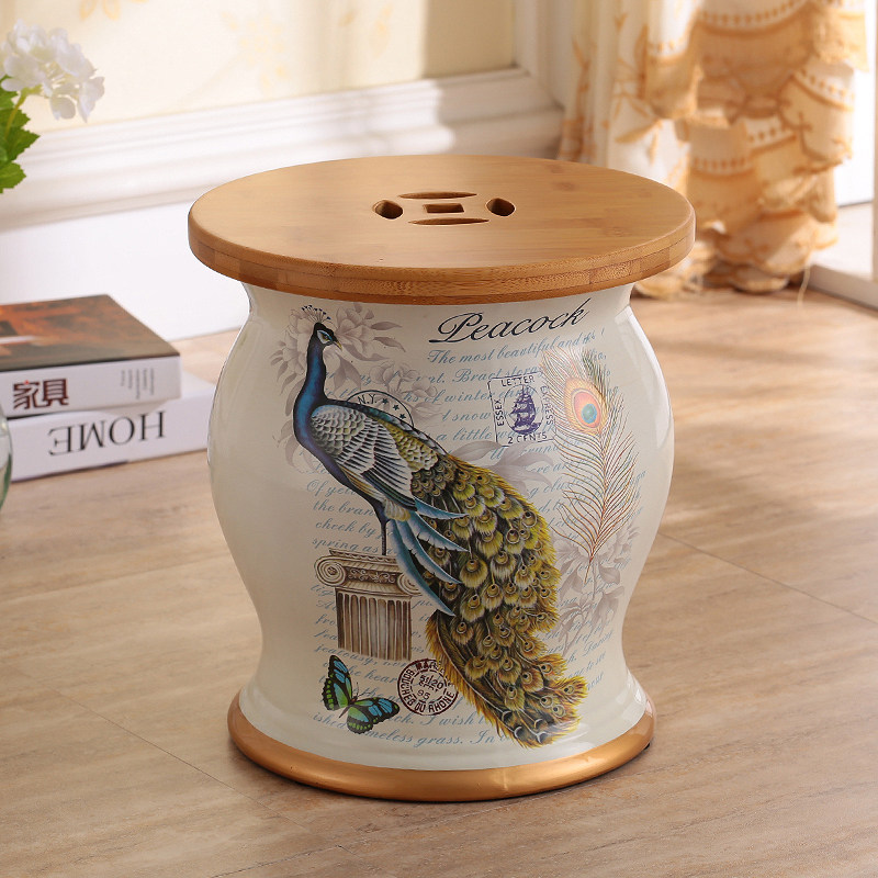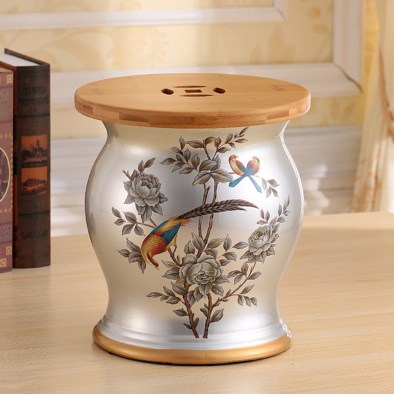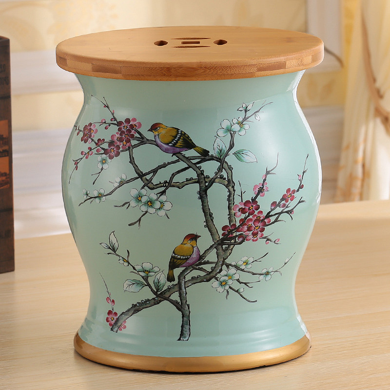 新品花鸟竹木陶瓷鼓凳家居工艺瓷墩梳妆凳换鞋凳家居装饰摆件储物