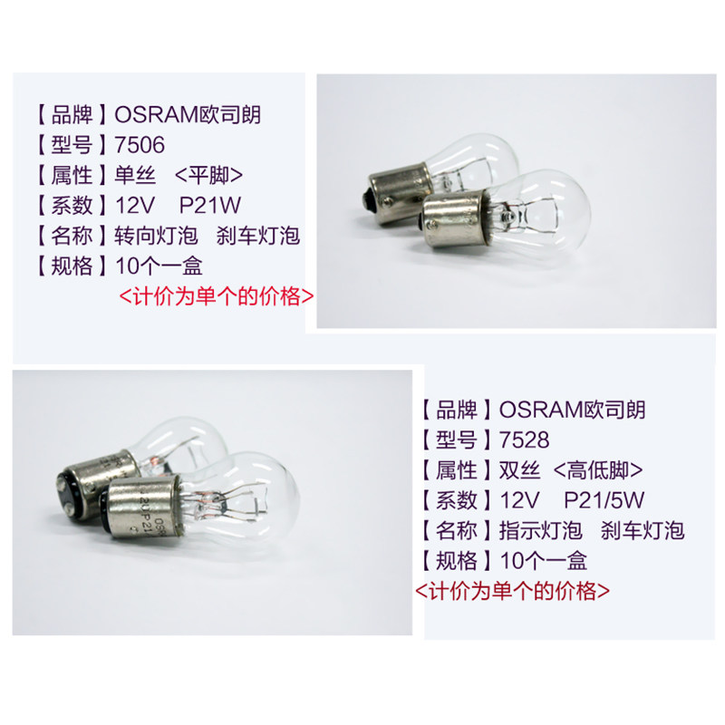 欧司朗刹车灯泡P21W汽车转向灯泡P21/5W后雾灯倒车灯指示灯尾灯