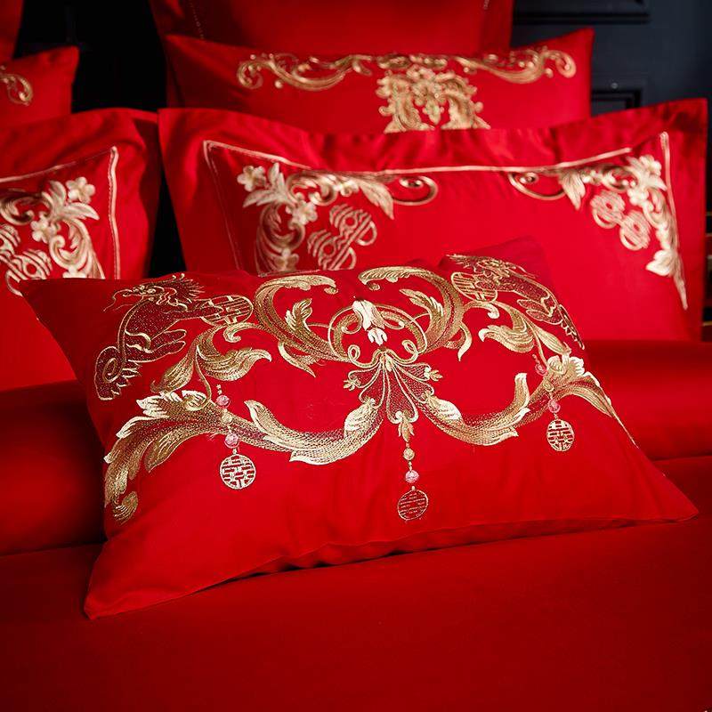 推荐理由:正品大红致纯棉小抱枕带色芯精婚刺绣结床品子孙枕婚庆配件 可拆