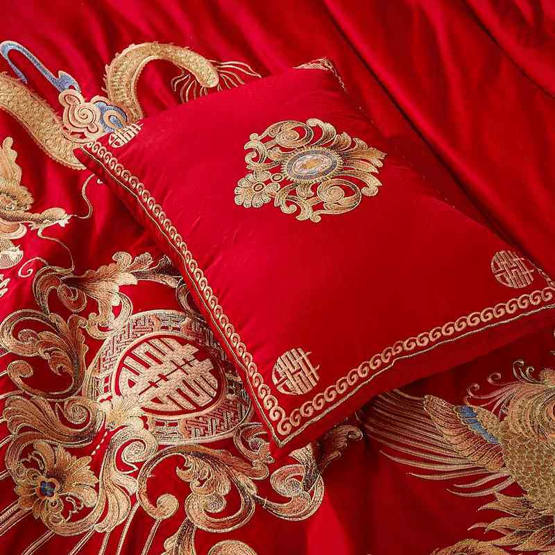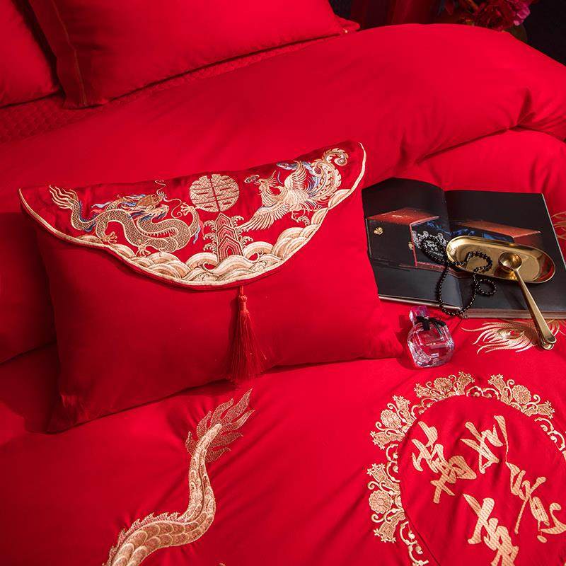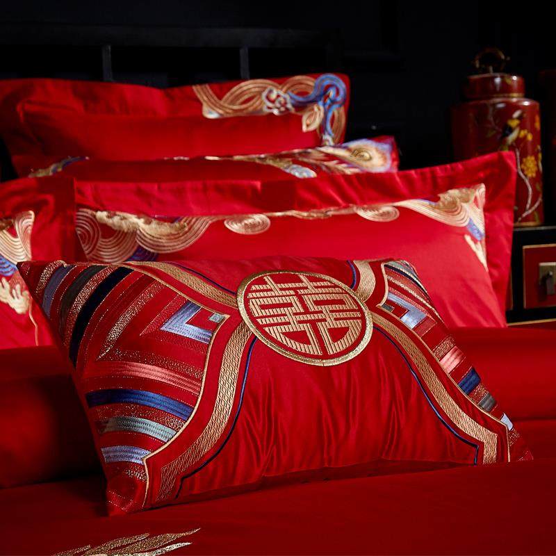 正品大红致纯棉小抱枕带色芯精婚刺绣结床品子孙枕婚庆配件 可拆
