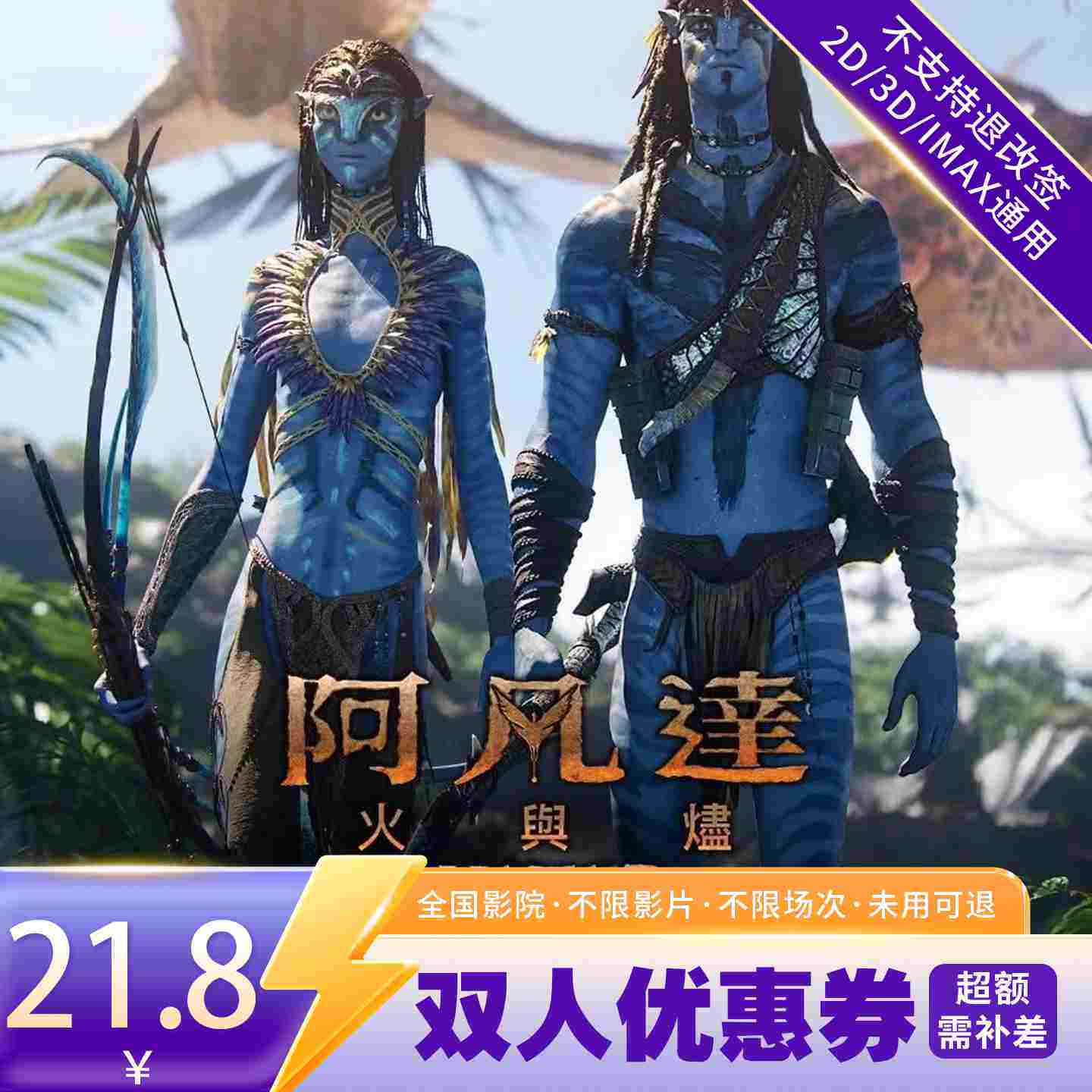 【阿凡达火与烬】双人21.8元电影票无门槛代金券全国通用特惠购票