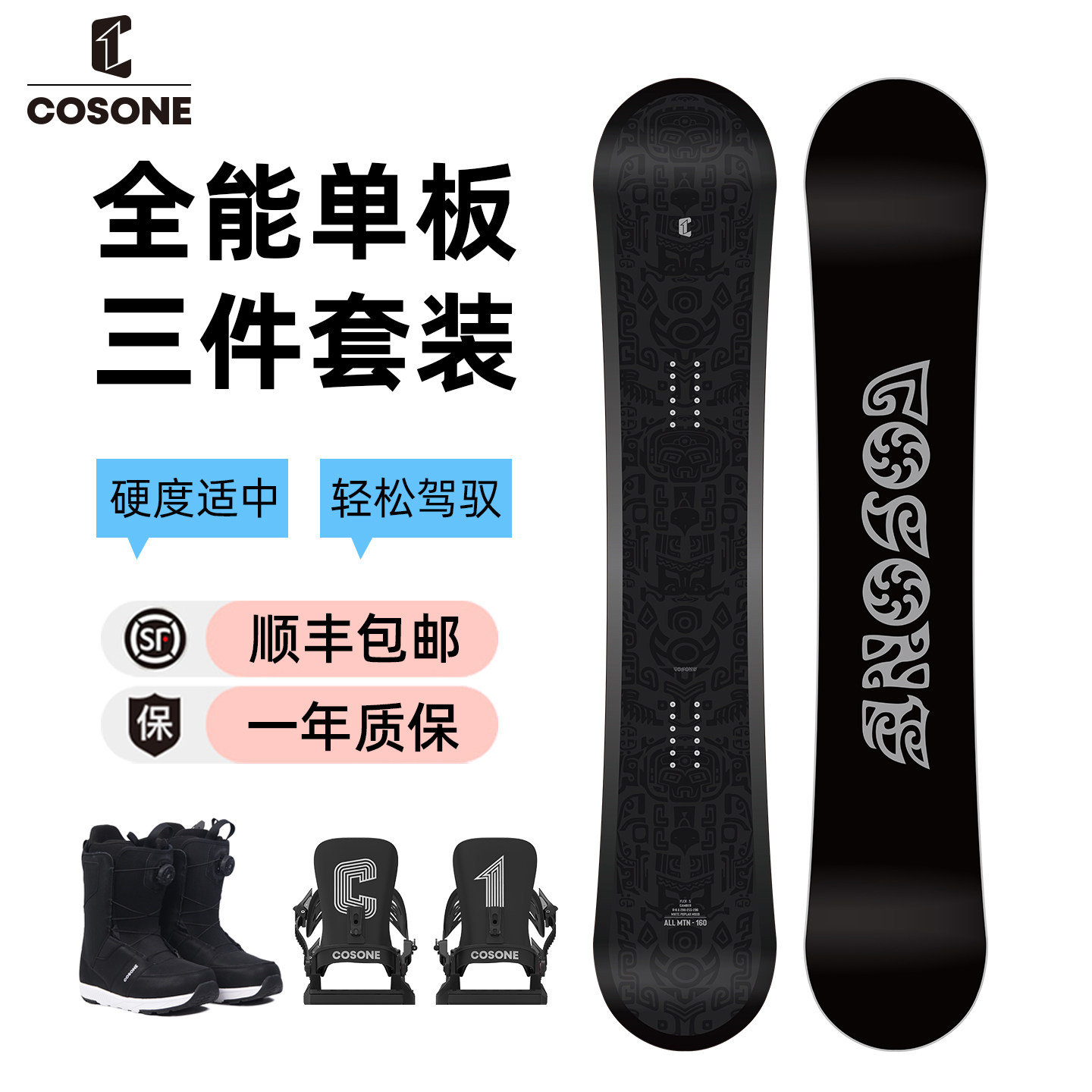 COSONE滑雪板单板套装男女初学进阶全能板新款全地域单板滑雪板