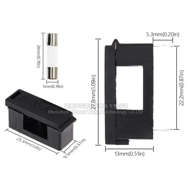 推荐理由:BLX-A型 保险丝座/保险管座 5*20mm 黑色带盖熔断器座 PCB板焊接