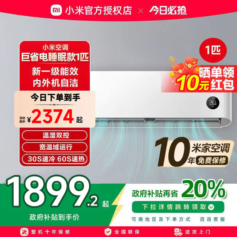小米米家空调巨省电睡眠款1匹一级能效智能变频挂机家用卧室冷暖