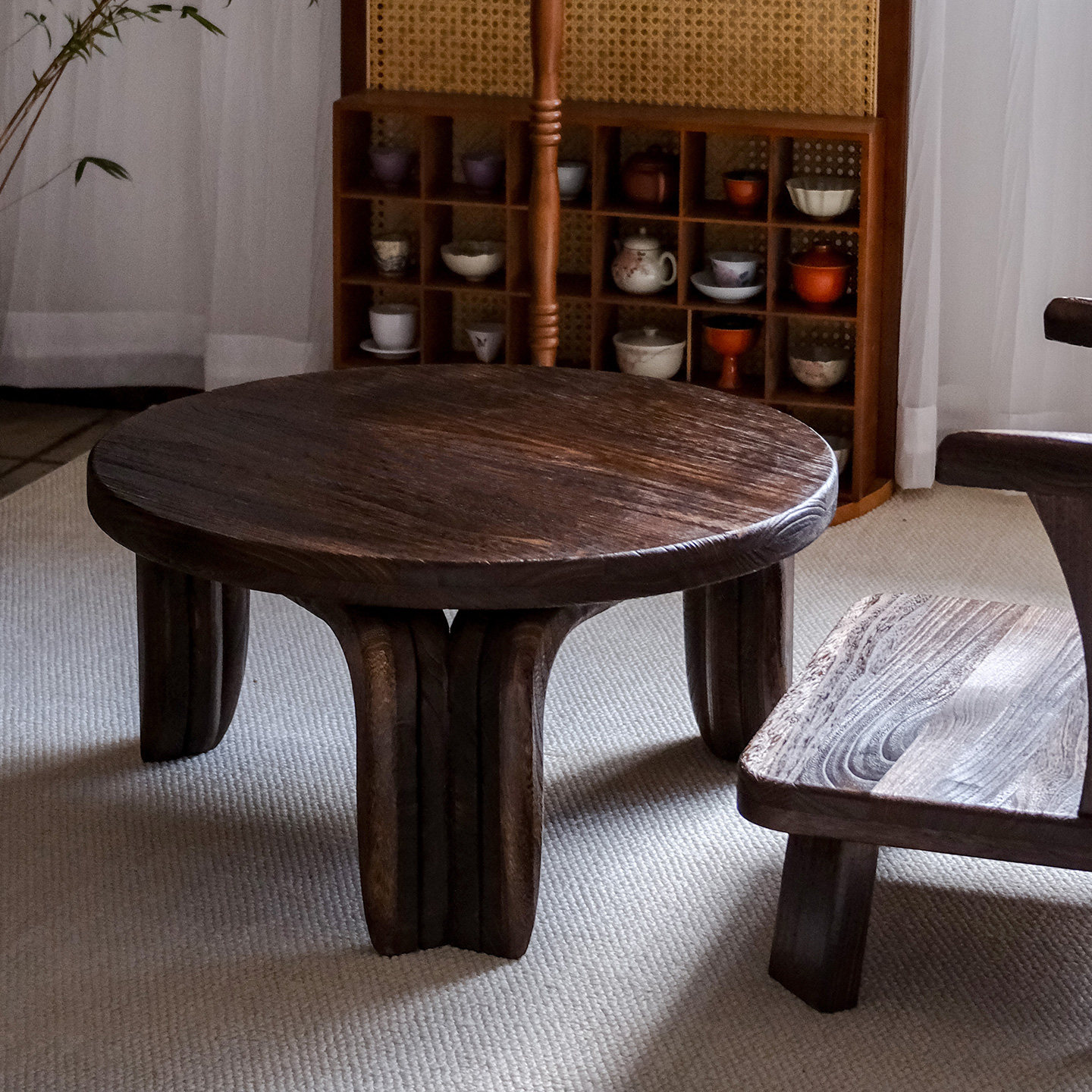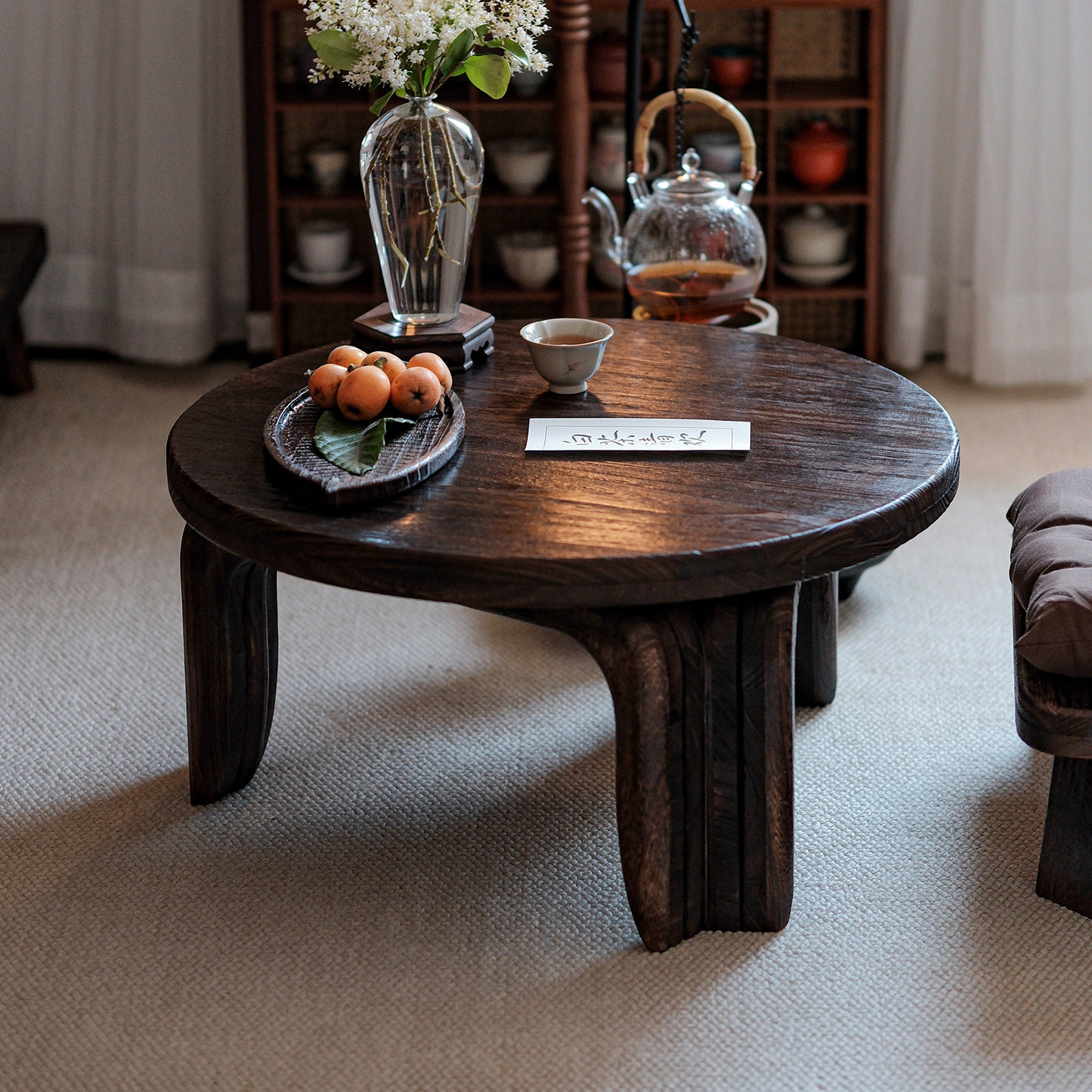 实木喝茶桌子中式复古小茶几民宿禅意圆桌阳台炕几坐地休闲飘窗桌
