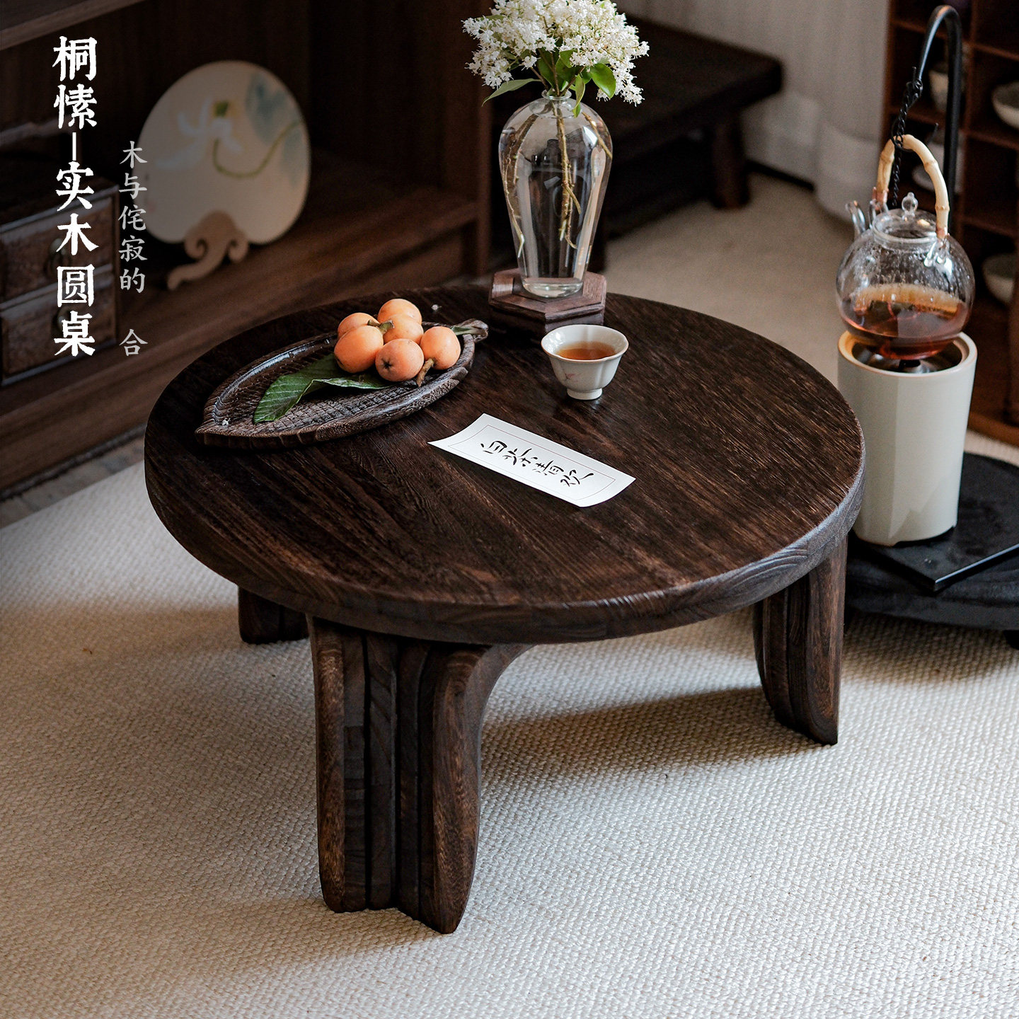 推荐理由:实木喝茶桌子中式复古小茶几民宿禅意圆桌阳台炕几坐地休闲飘窗桌