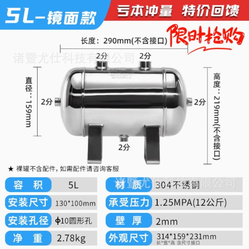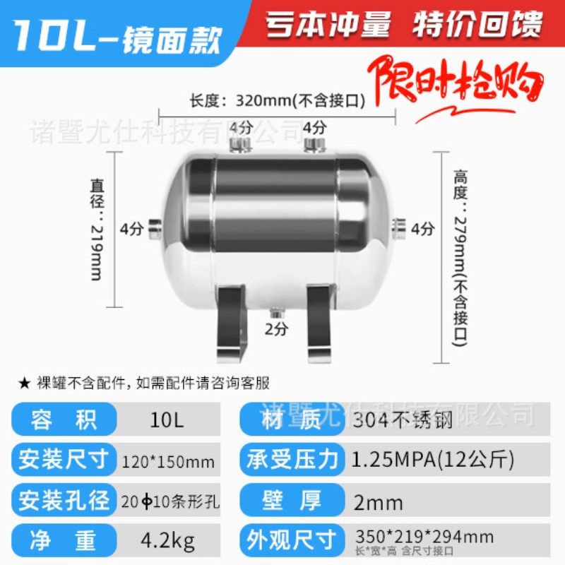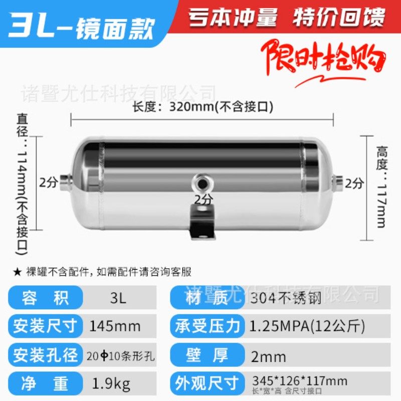 推荐理由:304不锈钢储气罐空压机存气罐高压储气筒微型空气压缩缓冲罐