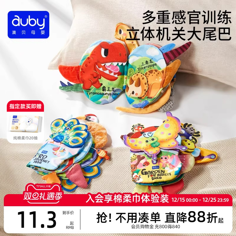 澳贝尾巴布书婴儿可啃咬撕撕书宝宝早教益智玩具启蒙生日周岁礼物