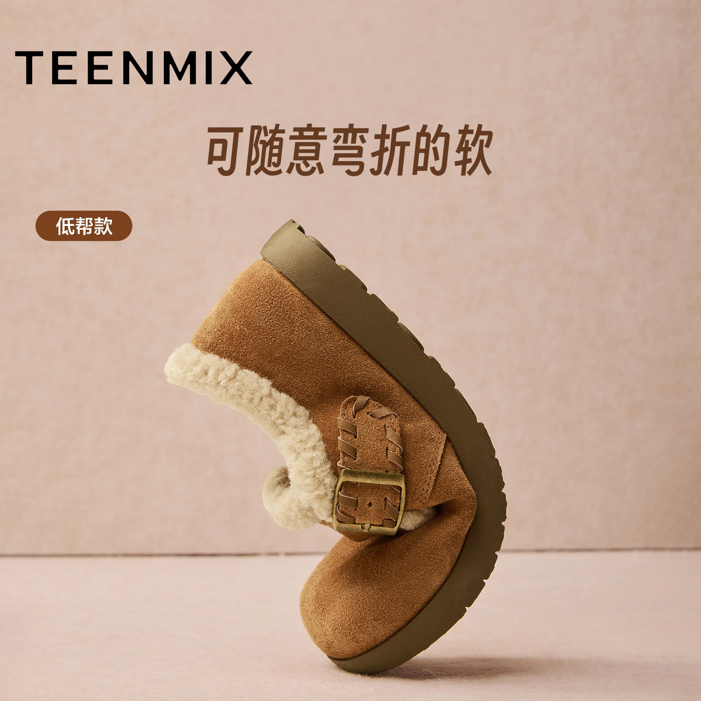 天美意厚底加绒保暖毛毛鞋棉鞋复古勃肯鞋女鞋子冬新款雪地靴短靴
