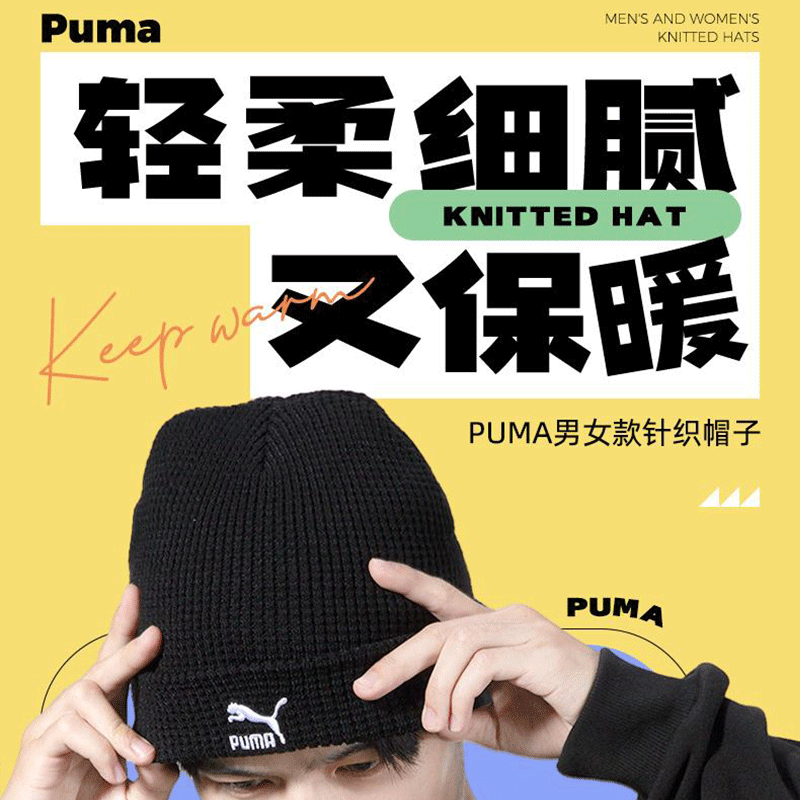 【自营】PUMA彪马绒线帽男帽女帽保暖情侣帽休闲遮耳帽冷帽毛线帽