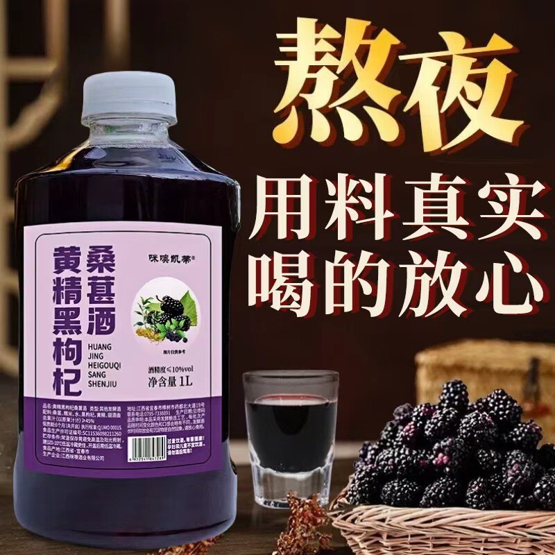 客酿1L黄精酒桑葚酒果酒黑枸杞10度微醺桑葚原汁酒发酵甜型小桶装