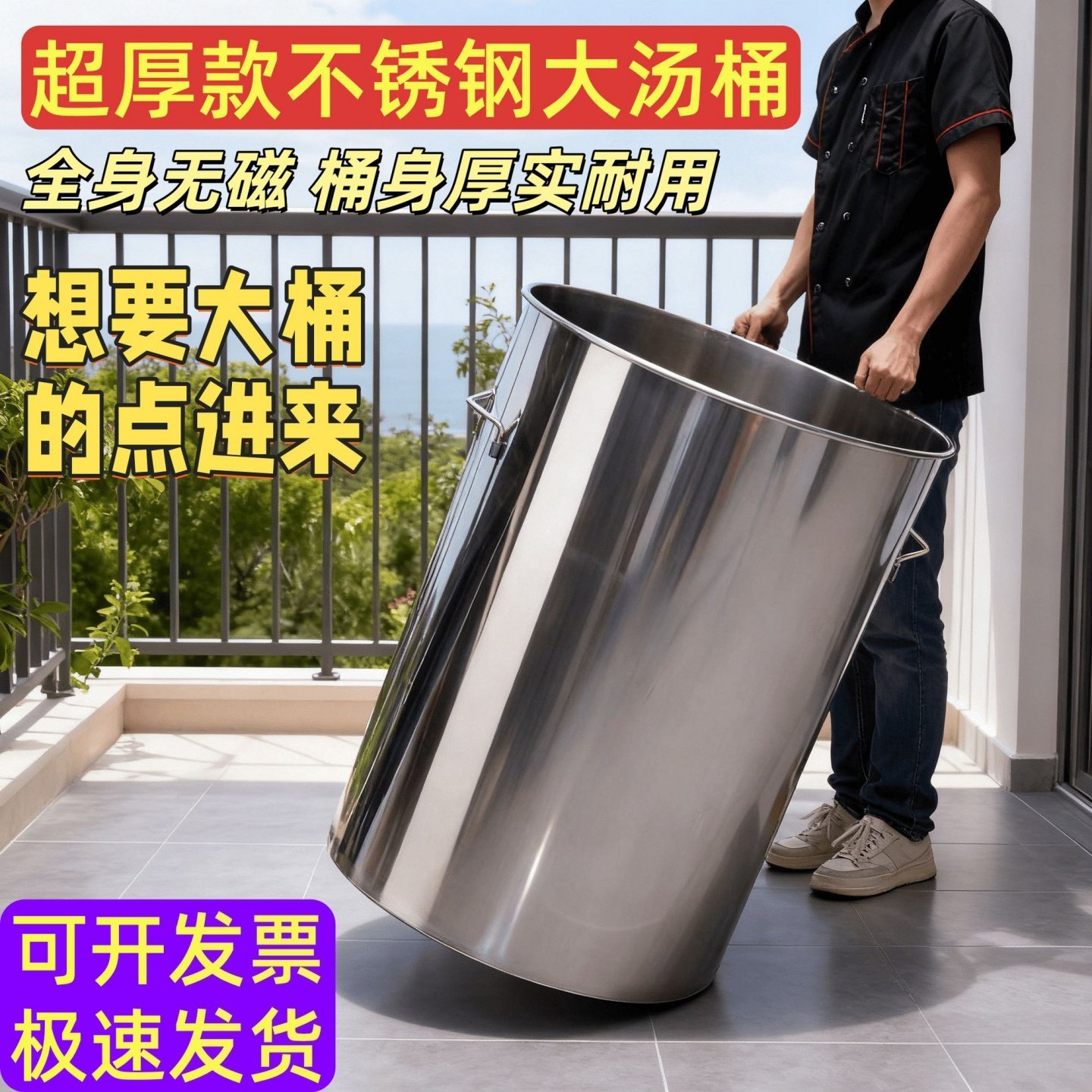 推荐理由:不锈钢卤肉桶汤桶吊桶圆桶带盖水桶加厚汤锅商用特厚大桶煮汤卤桶