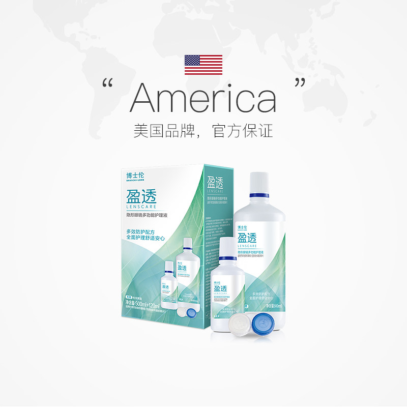 【自营】博士伦隐形近视眼镜盈透系列500+120ml大小瓶护理液组合