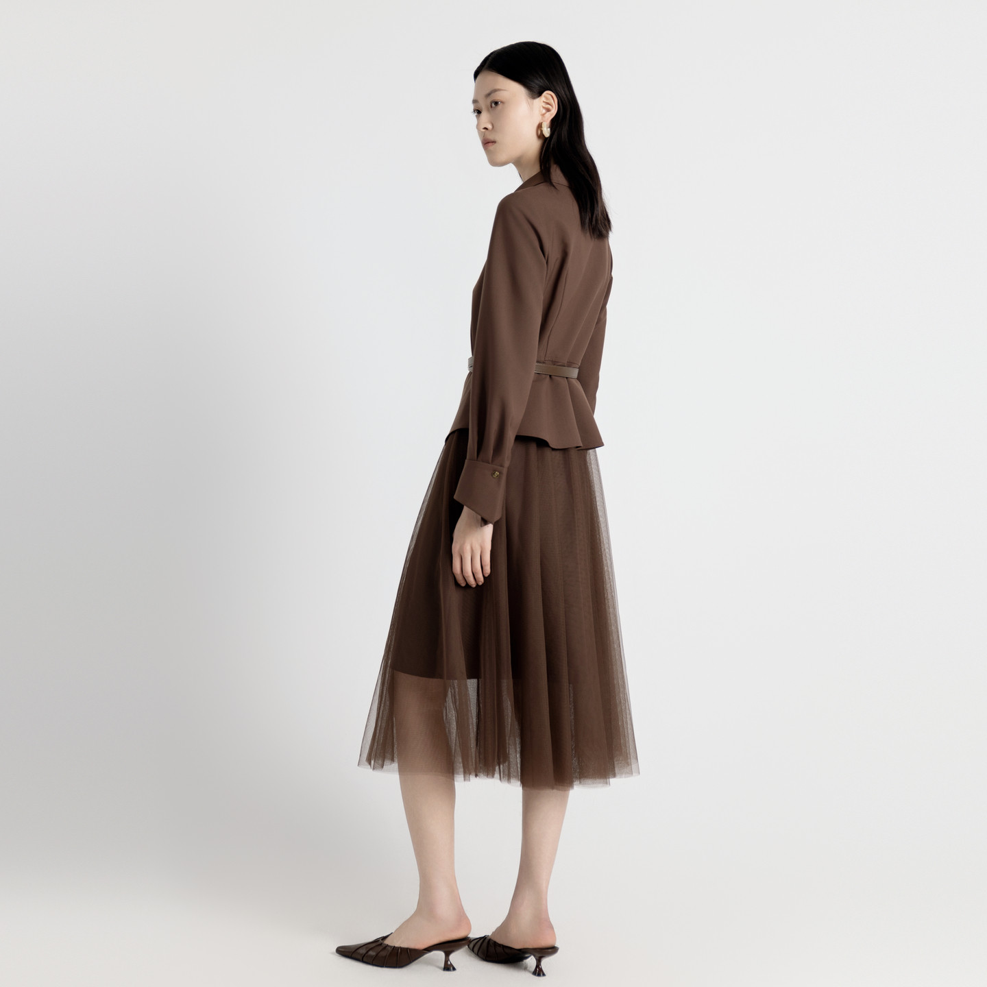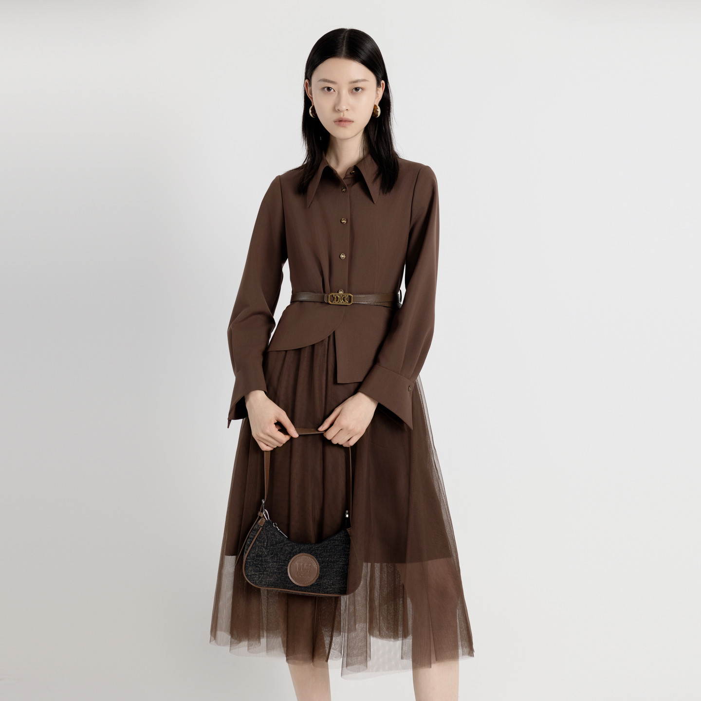 推荐理由:栗子棕假两件连衣裙