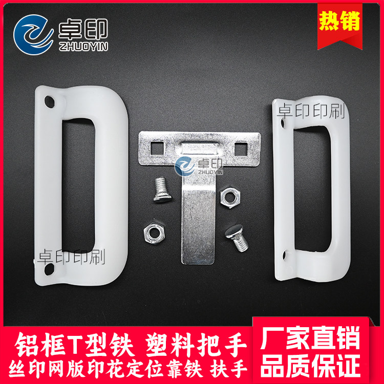 丝印铝框T型铁把手靠铁扶手塑料大印花跑台网框定位固定靠脚t形铁