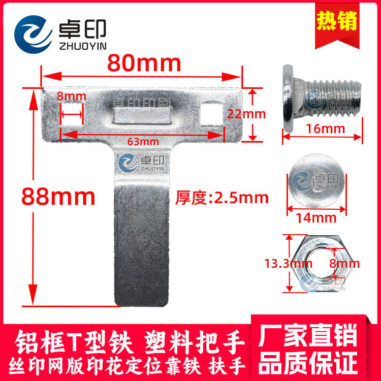 推荐理由:丝印铝框T型铁把手靠铁扶手塑料大印花跑台网框定位固定靠脚t形铁
