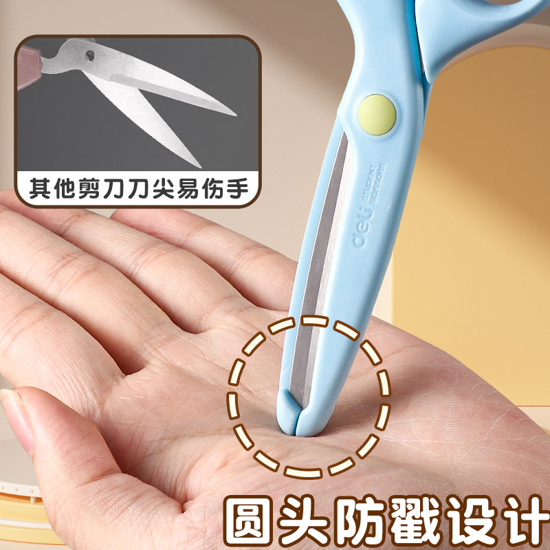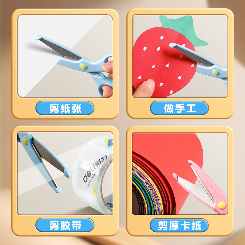得力儿童剪刀安全手工剪刀幼儿园专用剪纸剪子小学生包边圆头不伤手宝宝塑料小剪刀小型迷你美工美术折纸彩纸