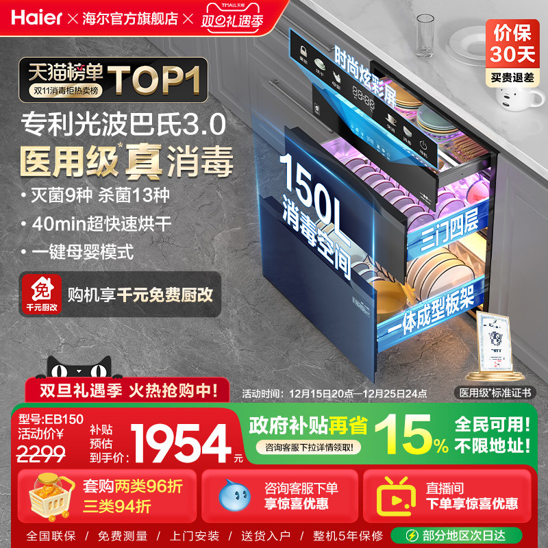 推荐理由:[热销]海尔医用级灭菌舱150L消毒柜家用嵌入式碗柜碗筷烘干EB150