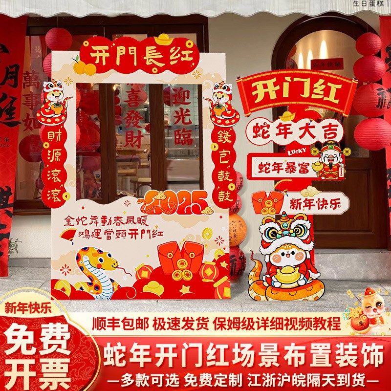 开门红气氛围职场布置装饰拍照框道具打卡2025蛇年会现场景kt展板