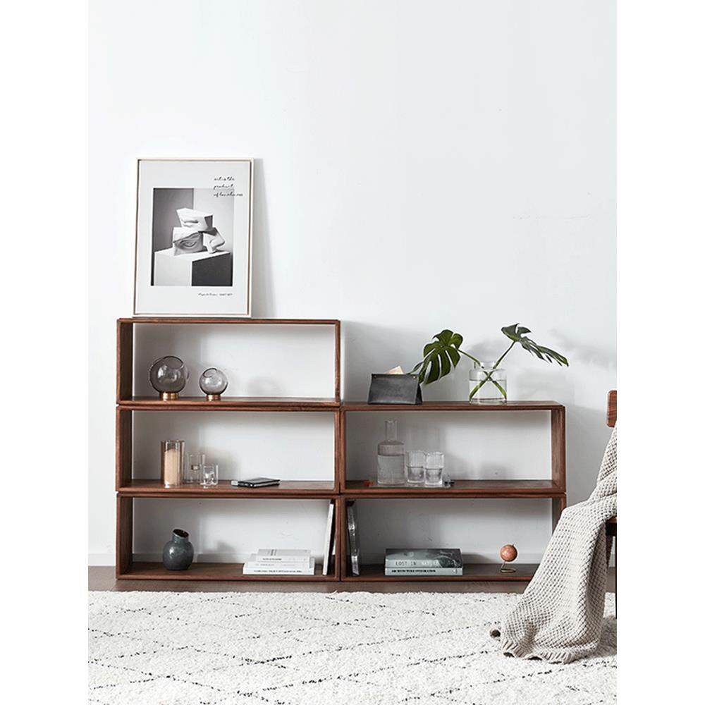 实木黑胡桃色长柜自由组合格子书柜简易矮柜落地书架创意沙发边几