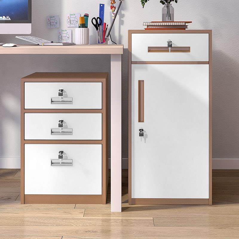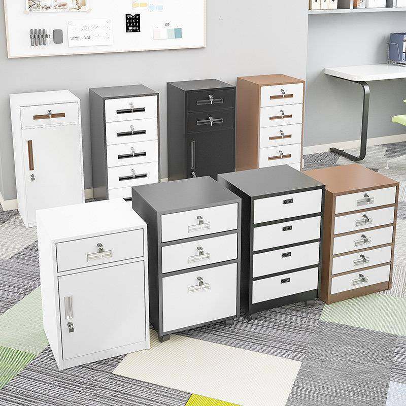 铁皮文件柜小矮柜办公桌下收纳柜活动柜带轮边柜带锁抽屉柜收纳柜