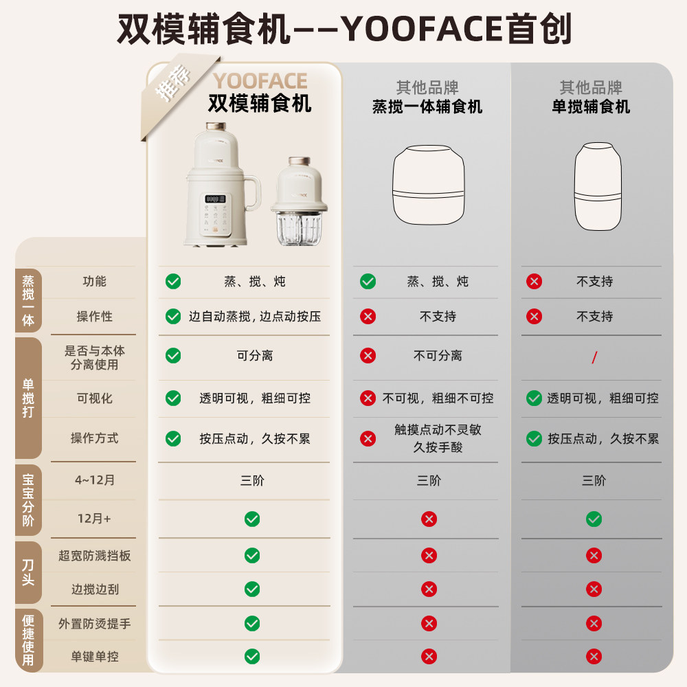 YOOFACE尤尔菲思双模辅食机婴儿宝宝专用料理机蒸煮一体打泥米糊