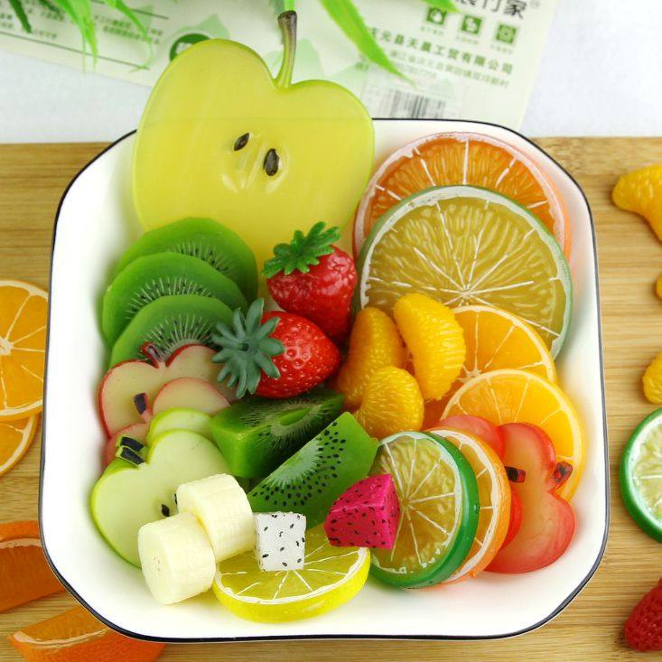 推荐理由:热卖仿真水果切片柠檬片西瓜片假樱桃装饰拍摄道具橙子片模型摆件