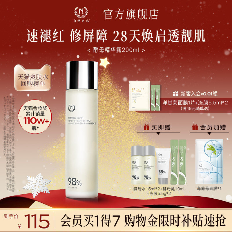 【立即抢购】自然之名酵母水湿敷补水保湿爽肤水精华非喷雾化妆水