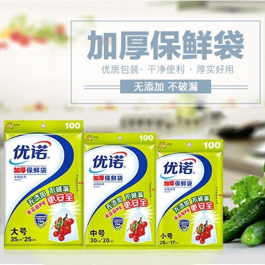 推荐理由:u723优诺加厚大号保鲜袋/单张抽取式/食品包装用/家用FE/保鲜专家