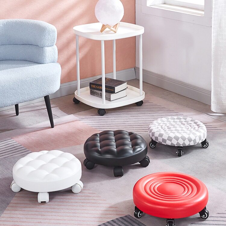 美缝凳家用带轮小凳子静音滑轮凳矮凳圆凳移动万向轮换鞋凳客厅凳
