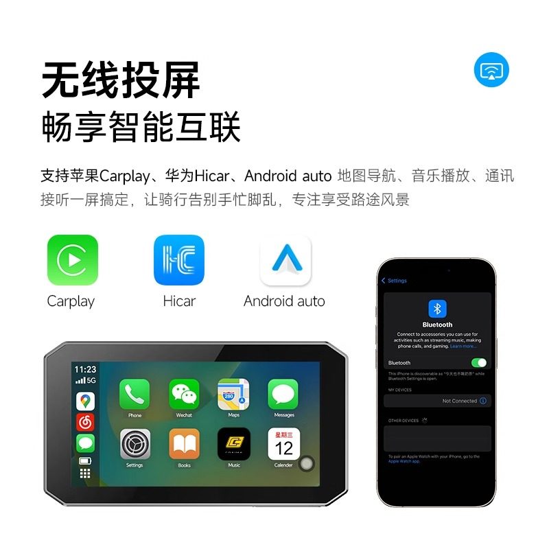 库吉马摩托车智能雷达车机Carplay组队地图导航行车记录仪胎压