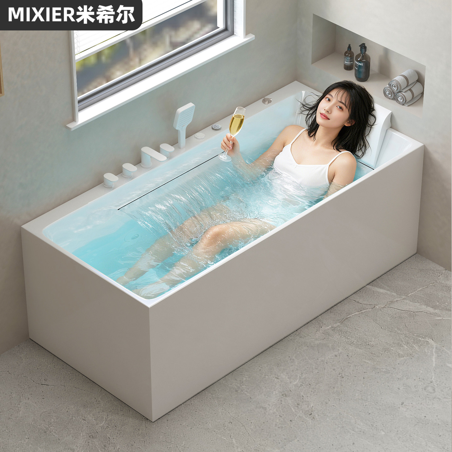 亚克力浴缸家用小户型方形缸冲浪按摩恒温日式深泡浴盆1.1-1.8米