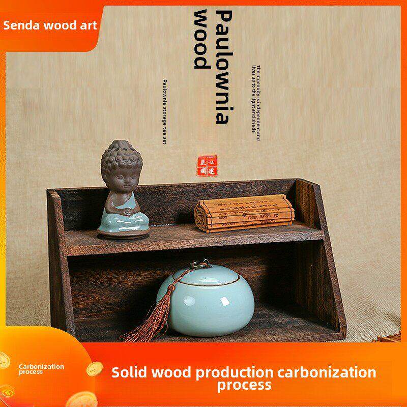 实木烧桐木茶具收纳架茶杯壶架子小多宝阁博古架中式挂墙二格摆架