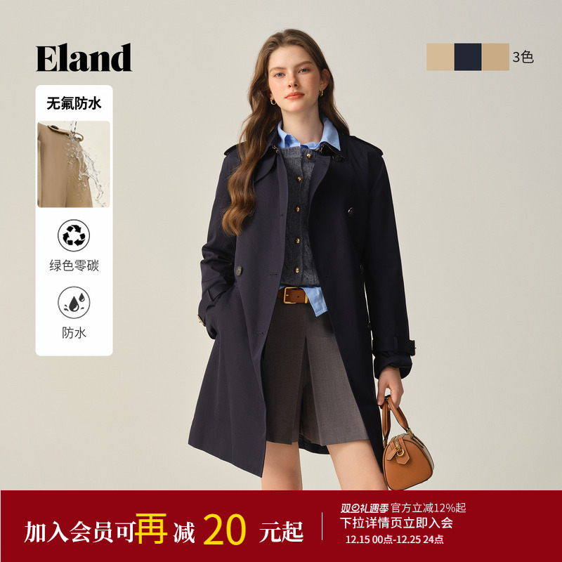 【无氟防水】Eland衣恋经典时尚风衣女宽松休闲外套2025冬季新款