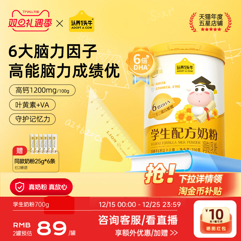 认养一头牛儿童成长奶粉学生奶粉6岁以上青少年守护记忆成长高钙