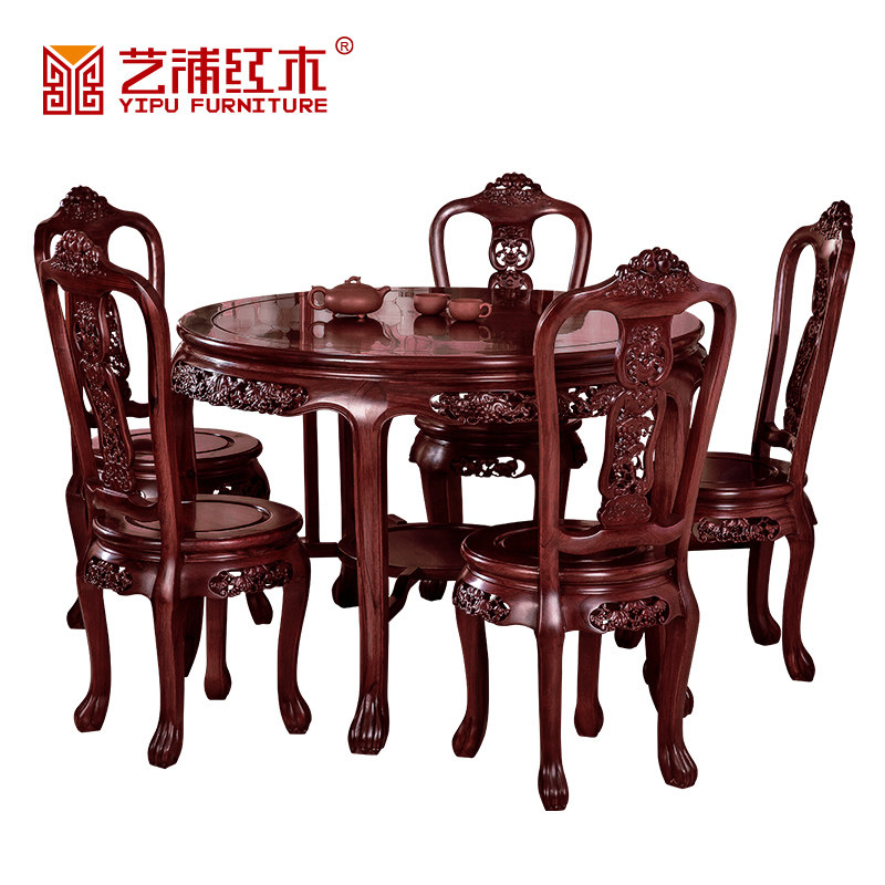 新中式红木家具巴里黄檀大果紫檀红酸枝木实木小圆餐圆桌椅凳组合