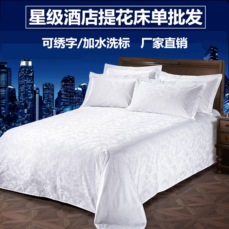 星级酒店宾馆专用床上用品60支全棉白色床单单件贡缎提花床罩被单