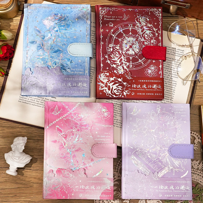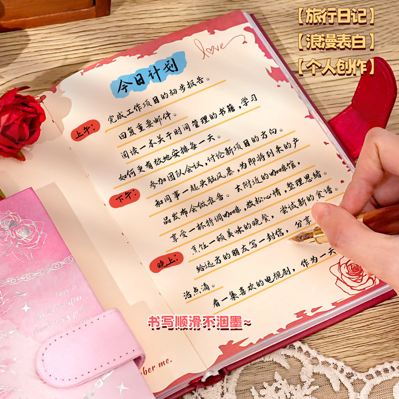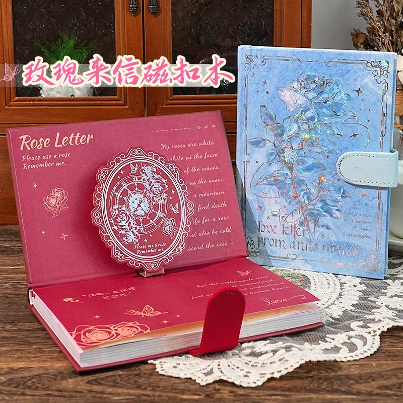 推荐理由:玫瑰文艺复古精装笔记本子高颜值烫金加厚磁扣本女孩手帐手账本记事本彩页摘抄日记本小学生教师节送老师礼物