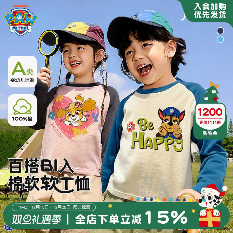 汪汪队男童长袖T恤春秋装2025新款纯棉儿童上衣春季宝宝男孩衣服