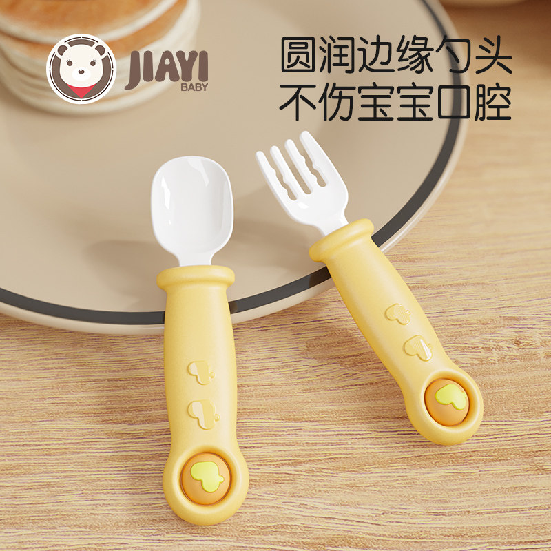 佳宜贝比婴儿学吃饭辅食勺训练宝宝自主进食勺子叉子儿童餐具套装