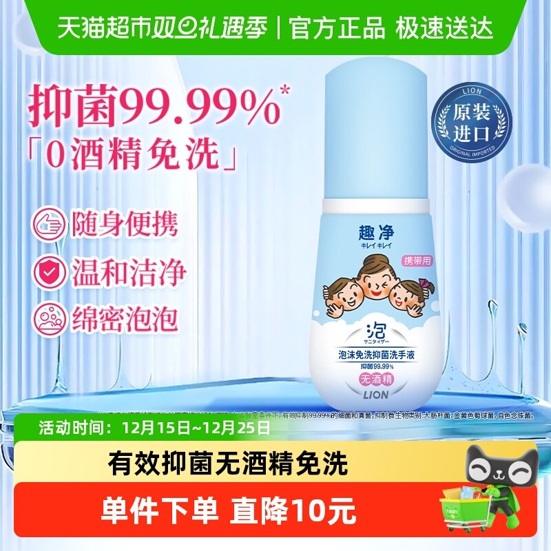 狮王趣净泡沫免洗抑菌洗手液出差旅行便携装宝宝适用温和无酒精