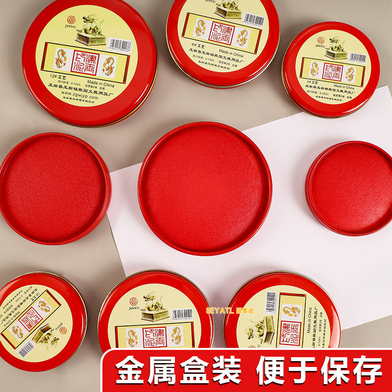 SEYATL新款圆形铁盒速干红色财务用品布面工艺印台专用3号6号12号