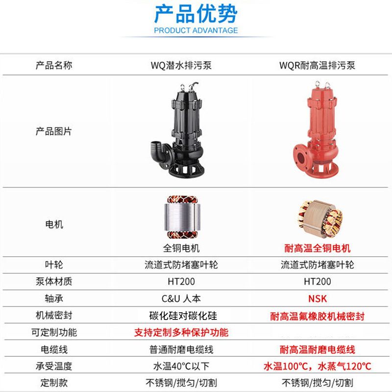推荐理由:WQR耐高温潜水排污泵 100度锅炉房酒店洗浴三相380v污水热水泵