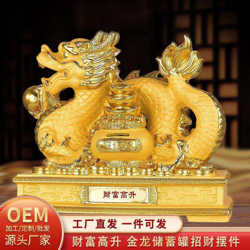 生肖龙存钱罐摆件十二生肖龙年客厅办公店铺树脂工艺品财富高升