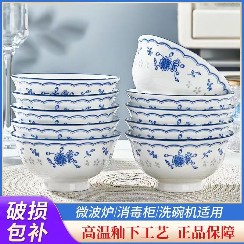 家用2025年新款高颜值青花陶瓷高脚碗釉下彩饭碗面碗汤碗盘具餐具