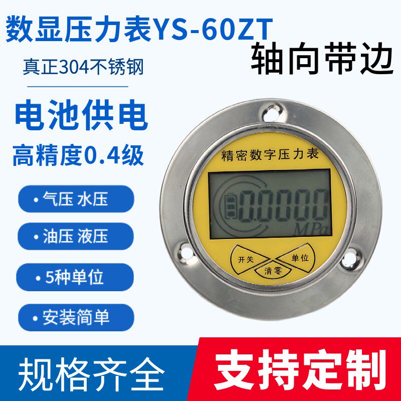 轴向带边精密数显压力表YS-60ZT高精度0.4级电子数字压力表川培