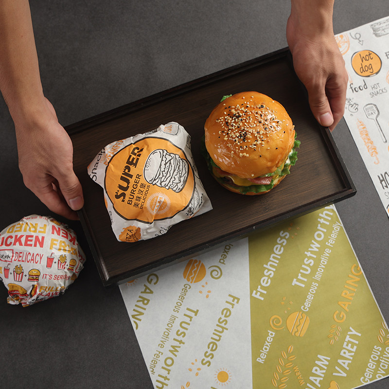 汉堡纸防油纸三明治饭团袋加厚专用食品级国潮图案包装纸可微波炉