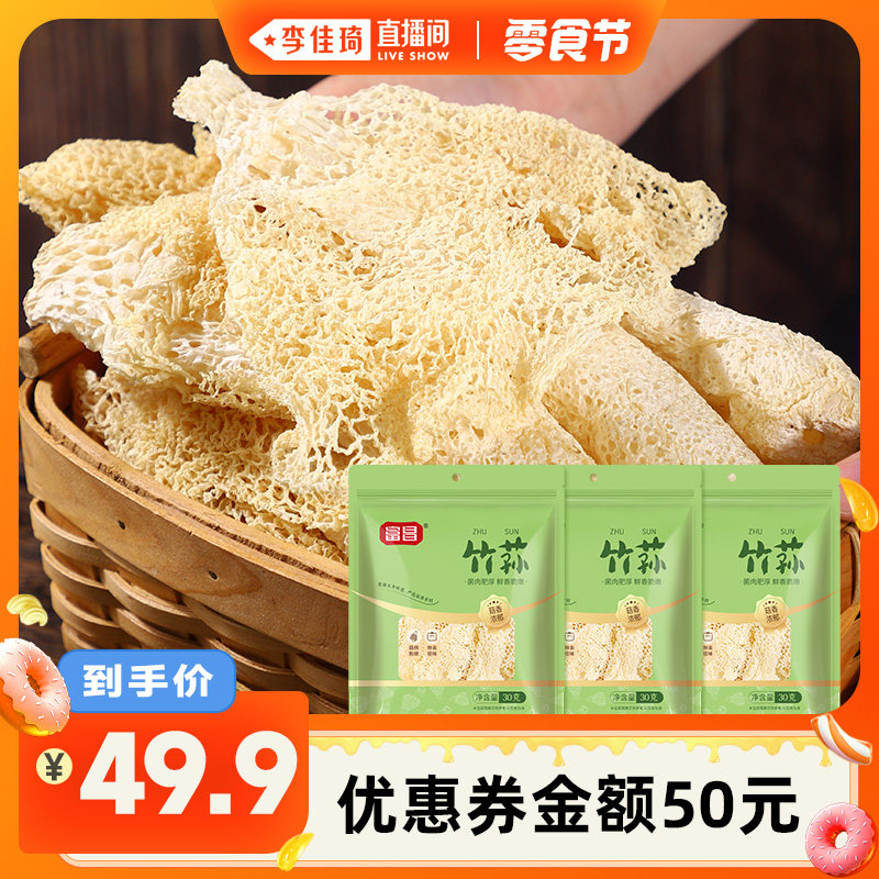 推荐理由:【李佳琦直播间小样零食节】富昌竹荪30g*3袋长裙炖汤材料食用菌