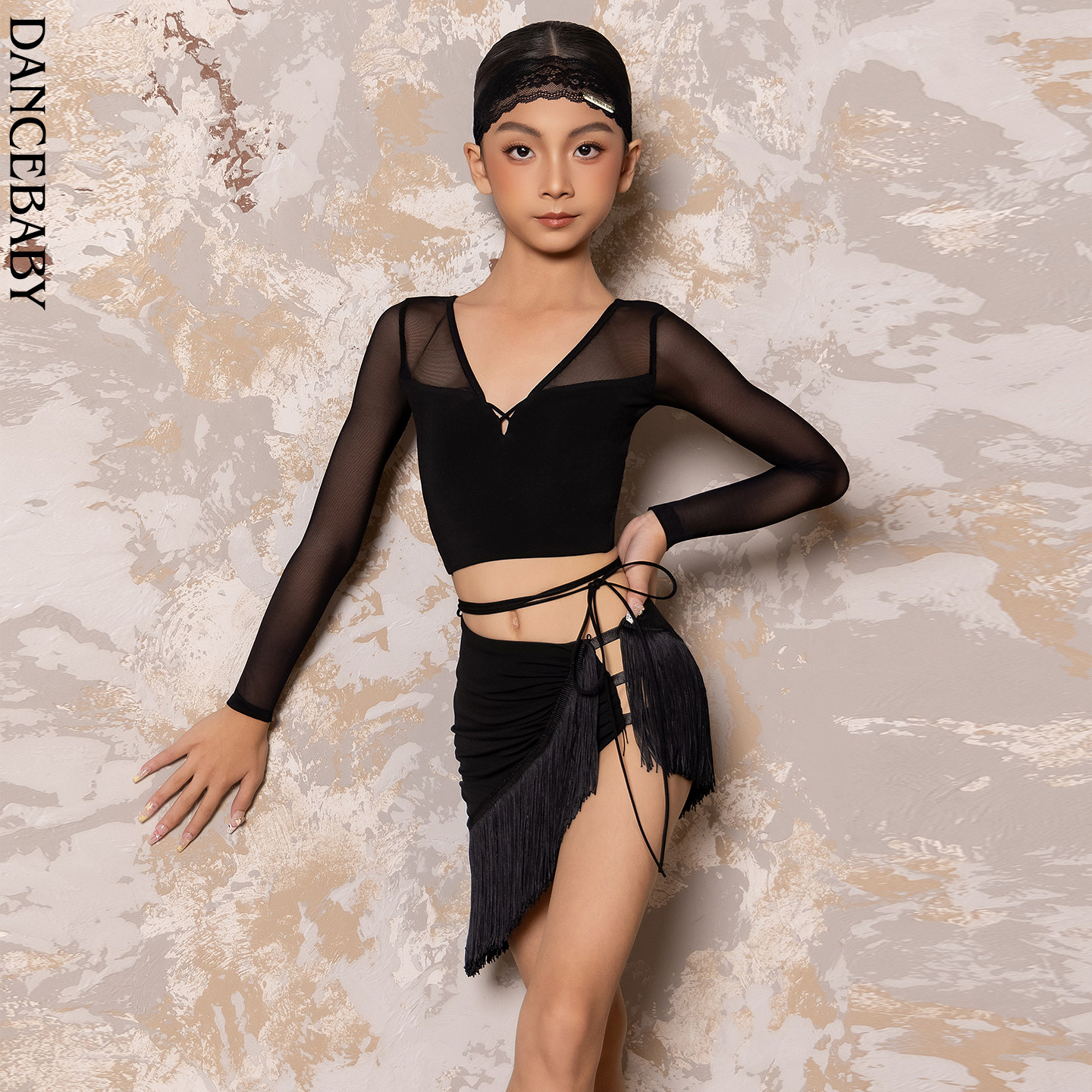 Dancebaby拉丁舞服女童冬季新款豹纹分体套装练习服舞蹈训练服D73