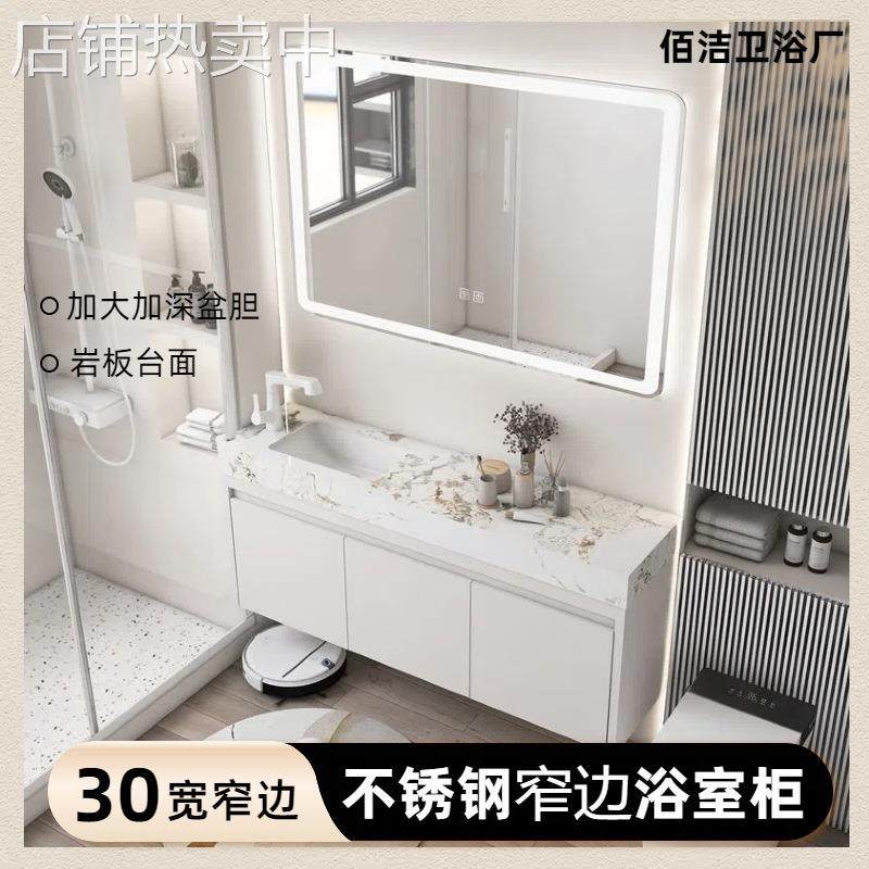 30宽不锈钢浴室柜组合岩板盆超窄边小户型小尺寸卫生间洗手洗脸盆